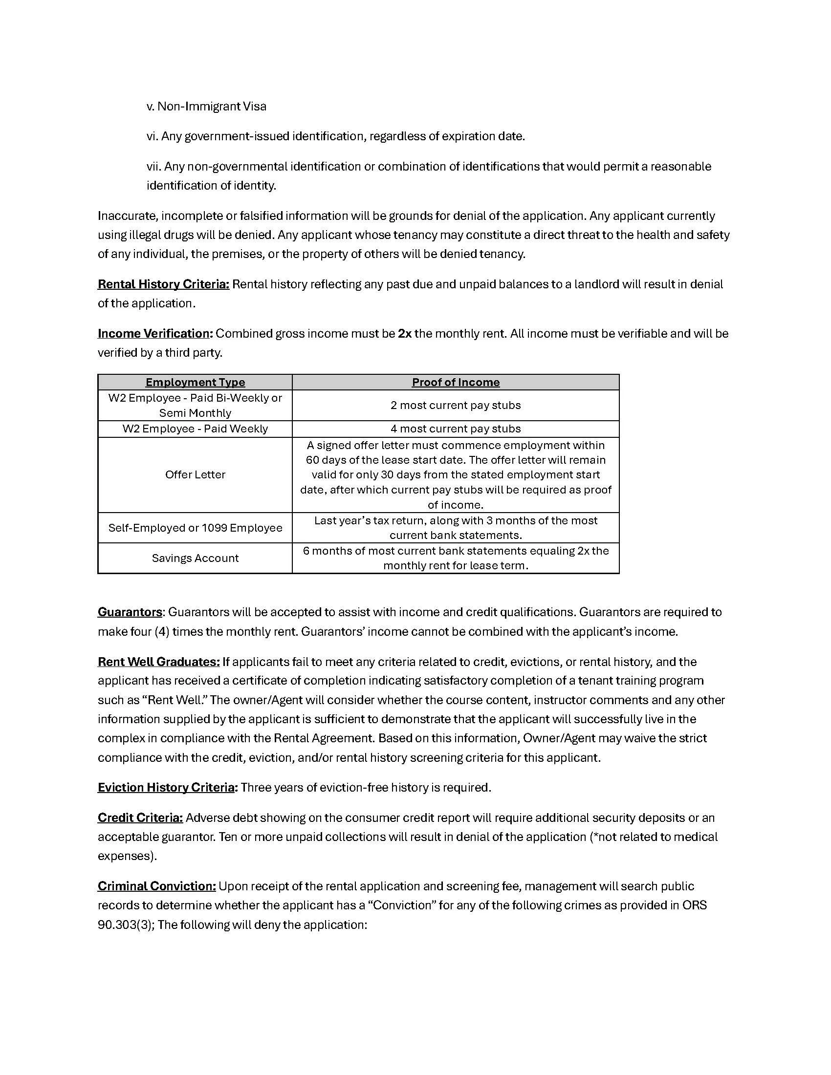 Rental Criteria